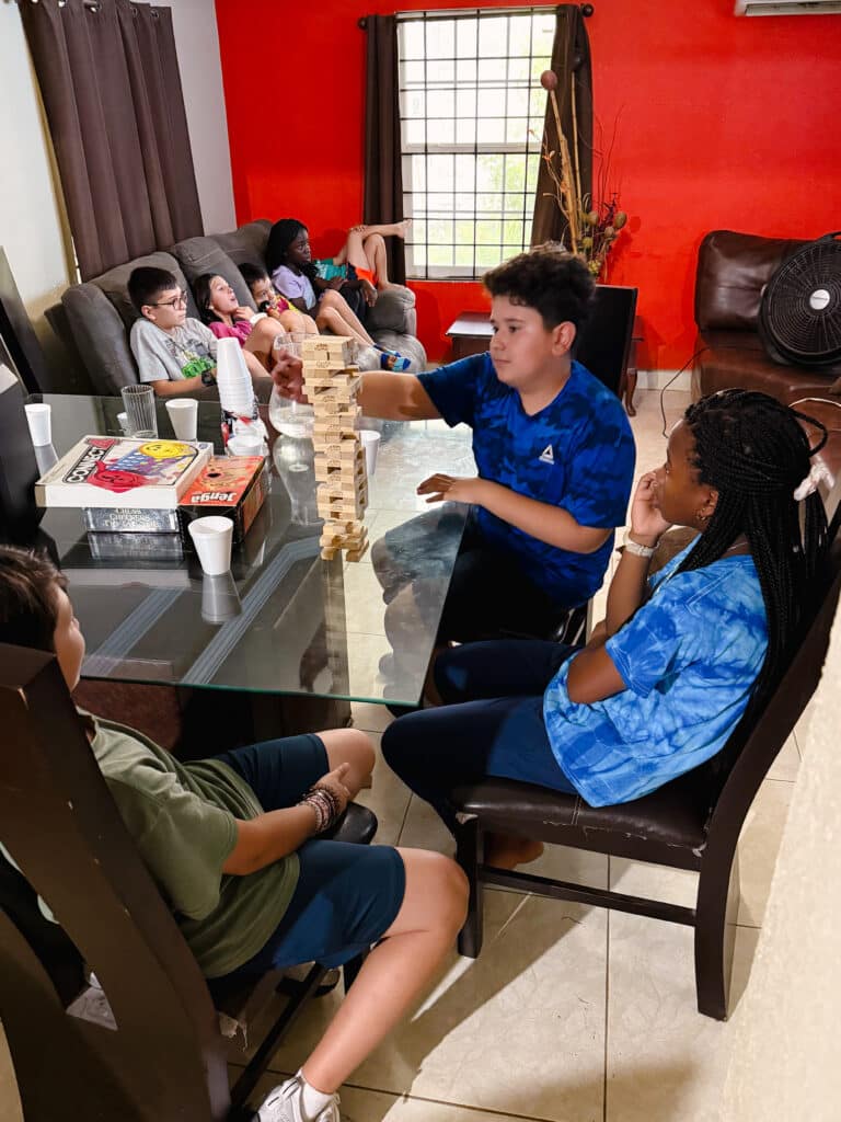 We parked in a nearby lot, and a police truck drove up. The officer asked if we needed some help. Abraham and Luis, very kind policemen, helped us find a welder in town. Meanwhile, the missionary community in General Cepeda (four hours away) were doing their best to help us fix the situation too. Don Toño, our missionary leader, told his friend that we broke down in his town. While we were waiting for the trailer to get fixed, we ate lunch. It took about two hours to fix the trailer. Don Toño’s friend, Señor Hever, tracked us down and found us at the restaurant eating lunch. His family were like angels! They generously invited us to stay the night with them. They had one son who loved to play board games. We played all afternoon. We ended the night praying a family Rosary with them in Spanish. I slept with their mascota, their pet, Wickey, all night.